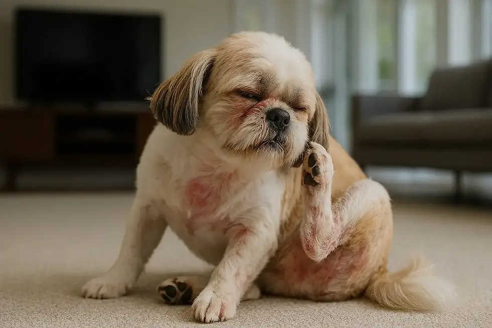 A dermatite é uma inflamação da pele que pode causar desconforto significativo ao animal. Ela não é uma doença única, mas sim uma condição que pode surgir por diferentes fatores, como alergias alimentares, picadas de pulgas, contato com substâncias irritantes, fungos, bactérias ou alterações no sistema imunológico.